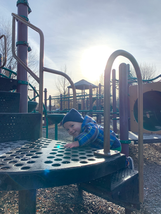 There are stairs up the middle or sandy trails on the left and right. The park also has a big playground with options for all ages. My littles have loved the toddler-sized areas and the swings (there are both infant and normal swings). There is also one of those “outdoor gym” setups next to the playground that kids love messing around on and a public bathroom and water fountain.
