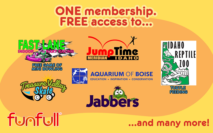 I’m really excited to share about something BRAND NEW in the Treasure Valley. Founded in 2020 by a dad in Delaware, Funfull was created with the goal of making family fun more accessible and affordable for families. With a Funfull membership your family has an all-access pass and exclusive discounts to multiple family entertainment businesses like trampoline parks, roller skating and more!