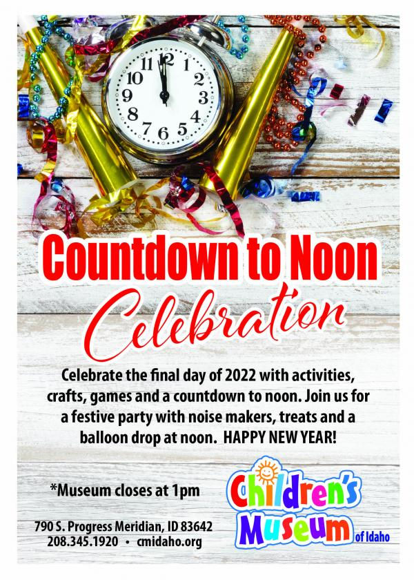 - “Celebrate the final day of 2022 with activities, crafts, games and a countdown to noon. Join us for a festive party with noise makers, treats and a balloon drop at noon. Free with museum admission. Museum closes at 1:00pm”