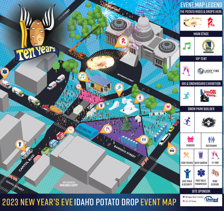 The 10th annual Idaho Potato Drop promises to be bigger and better! There will be several activities added to the event this year, heated tents, fireworks, amazing musical talent, VIP tent and so much more. This New Year’s come down and celebrate this free, charitable event!
