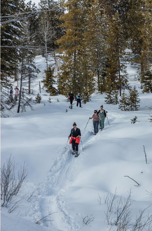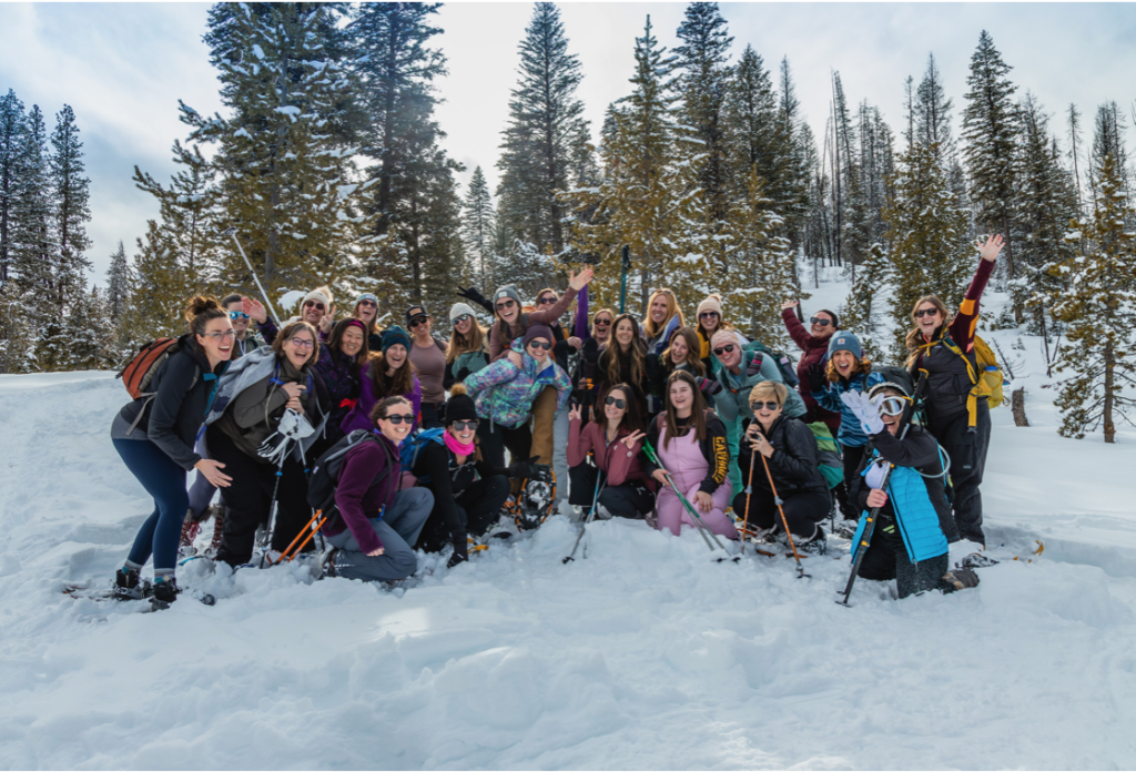 I’m most definitely not an expert when it comes to outdoor adventuring but I just had to share about the recent snowshoe and hot springs experience I recently had with a big group of women. My friend Kim, @idahoadventuremom on Instagram, and I have been hosting monthly “Moms Night Out” events for over a year now and for this month’s meetup we decided to gather outside Idaho City and do a snowshoe loop followed by a dip at The Springs (a hot springs retreat at Idaho City). We were so excited to have 27 women say “yes” to adventure and come along with us. So many of us had never met and many came solo – eager to connect with other local women!