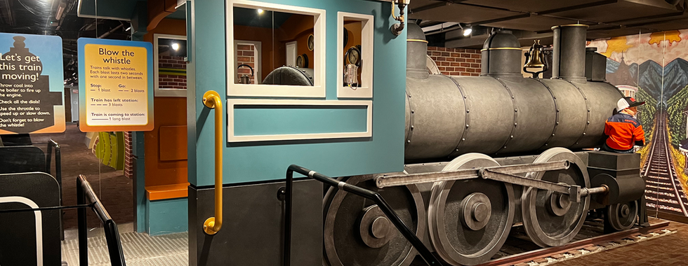 Down the little hallway is a show-stopping train engine. Kids can throw “coal” into the “boiler” to fire up the engine as well as move gears and blow the train’s whistle. If you have a little train lover they will lose their minds over this!